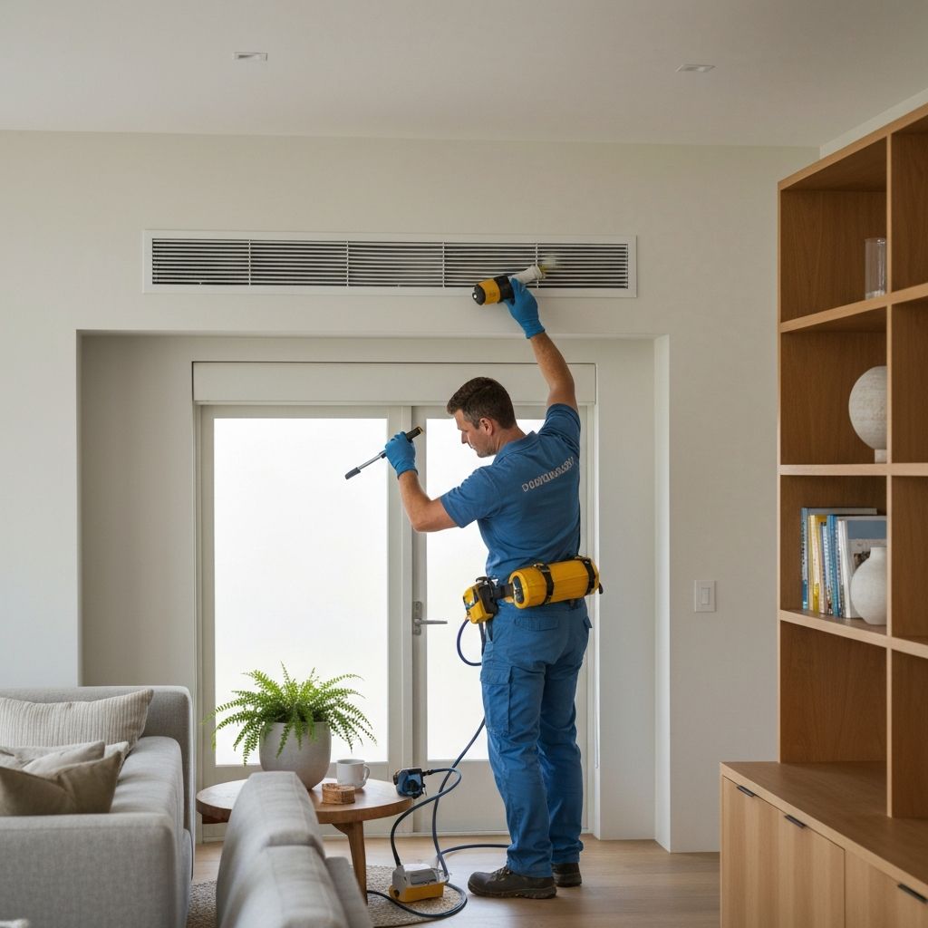Professional air duct cleaning to remove dust, debris, and allergens from your HVAC system for cleaner indoor air quality.
